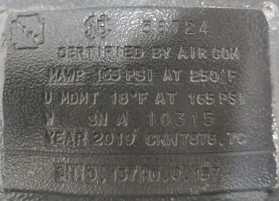| AIR RECEIVER TANK | 56.8 GALLONS |