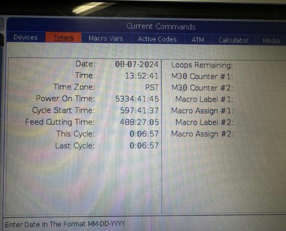 - Power on: 5334 / Cycle Start: 597 / Feed Cutting: 488