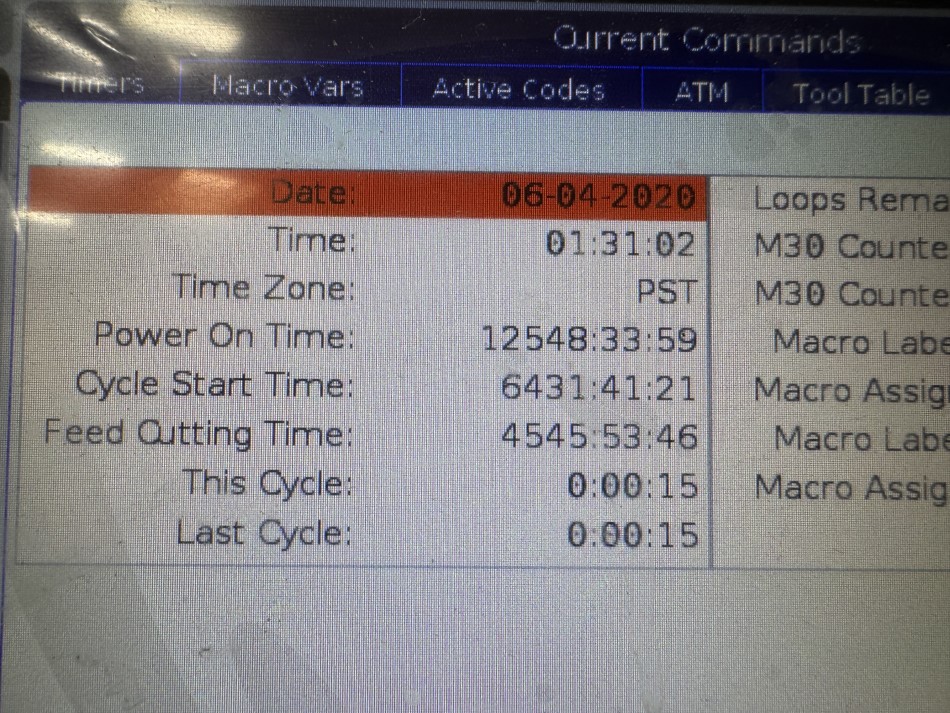 - Hours: Power: 12548 / Cycle Start: 6431 / Feed Cutting: 4545