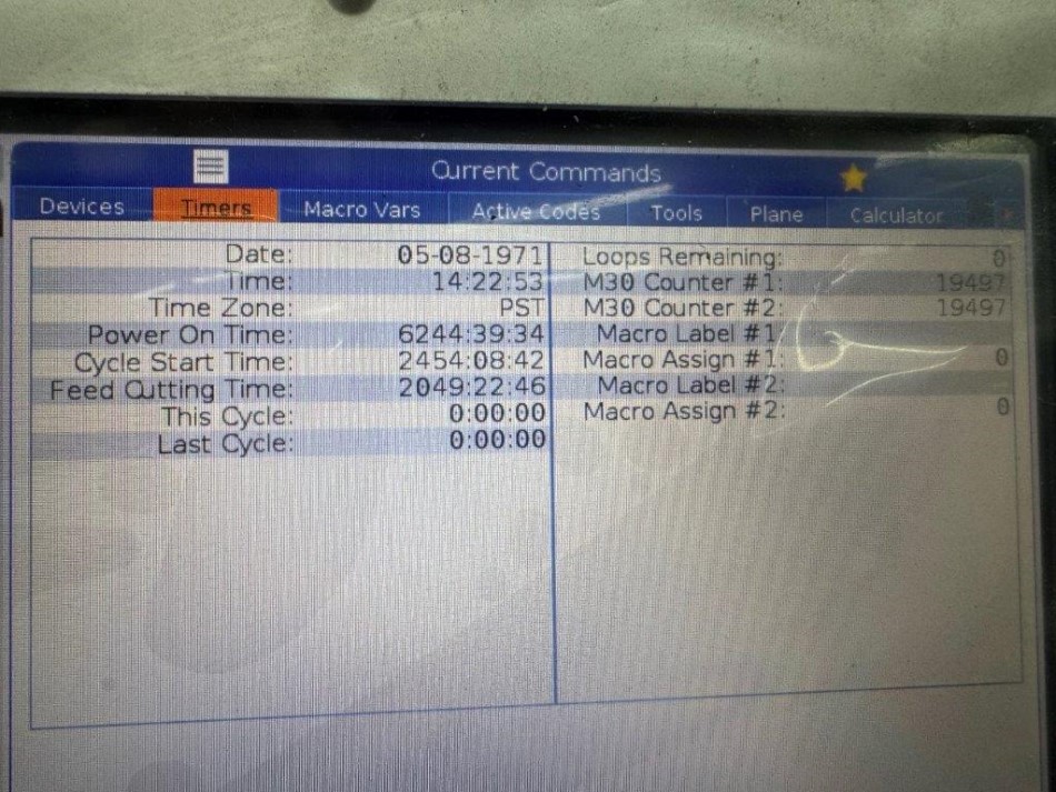 - Hours: Power On: 6244 / Cycle Start: 2454 / Feed Cutting: 2049