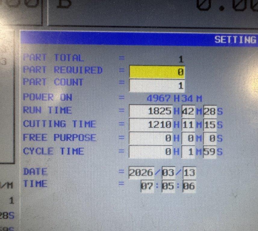 - HOURS: POWER ON: 4967 / RUN TIME: 1825 / CUT TIME: 1210